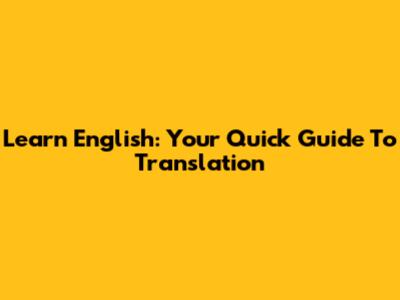 Learn English: Your Quick Guide To Translation