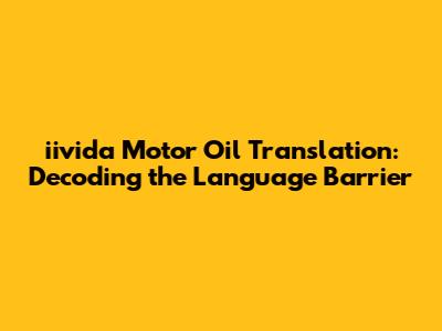 Hey guys! Ever found yourself staring at a bottle of iivida motor oil, scratching your head, and wondering what all the Spanish (or any other language!) labels mean? You're not alone! Understanding the iivida aceite motor translation is crucial for anyone who wants to keep their engine purring like a kitten. It's not just about knowing the basic words; it's about grasping the nuances of automotive terminology and ensuring you're using the right oil for your vehicle. This guide will break down the language barrier, giving you the tools you need to confidently choose and use iivida motor oil, regardless of the language on the label. We'll dive deep into the essential terms, explore the different types of oil, and even give you some handy tips for deciphering those tricky abbreviations. Let's get started, shall we?