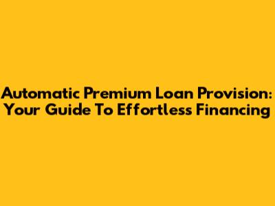 Automatic Premium Loan Provision: Your Guide To Effortless Financing