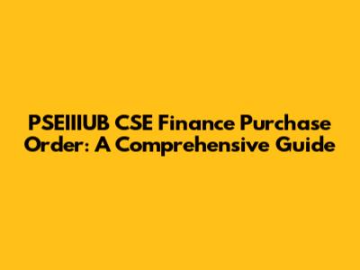PSEIIIUB CSE Finance Purchase Order: A Comprehensive Guide