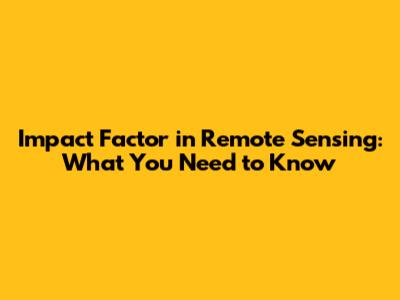 Why Impact Factor Matters in Remote Sensing