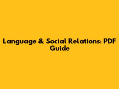 Language & Social Relations: PDF Guide