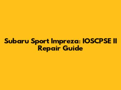 Subaru Sport Impreza: IOSCPSE II Repair Guide