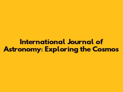 Why should you care about the International Journal of Astronomy? Here's the scoop: