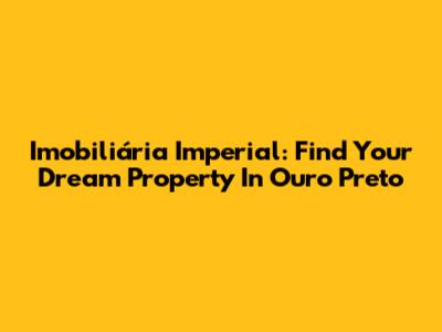 Imobiliária Imperial: Find Your Dream Property In Ouro Preto