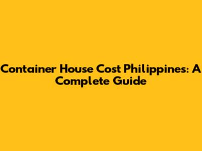 Container House Cost Philippines: A Complete Guide