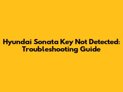 Hyundai Sonata Key Not Detected: Troubleshooting Guide