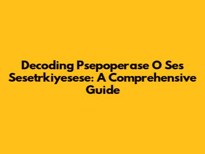 Decoding Psepoperase O Ses Sesetrkiyesese: A Comprehensive Guide