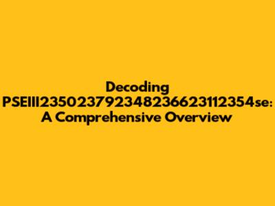 Decoding PSEIII235023792348236623112354se: A Comprehensive Overview