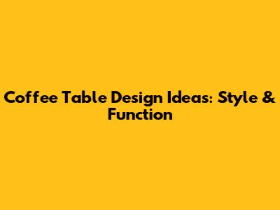 Coffee Table Design Ideas: Style & Function
