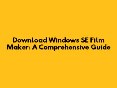 Download Windows SE Film Maker: A Comprehensive Guide