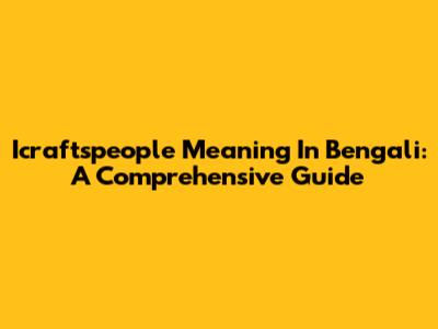 Icraftspeople Meaning In Bengali: A Comprehensive Guide