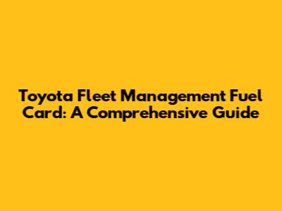 Toyota Fleet Management Fuel Card: A Comprehensive Guide