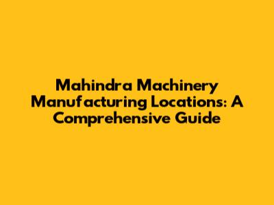 Mahindra Machinery Manufacturing Locations: A Comprehensive Guide