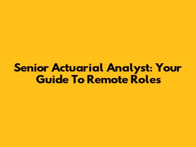 Senior Actuarial Analyst: Your Guide To Remote Roles