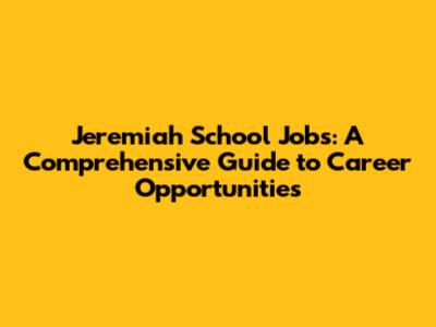 Hey there, future educators and career enthusiasts! Are you on the lookout for a fulfilling career that allows you to make a real difference in the lives of young people? Well, Jeremiah School might just be the place for you! In this detailed guide, we'll dive deep into the world of Jeremiah School jobs, exploring the various roles, the skills you'll need, and the exciting career paths you can embark on. So, grab a cup of coffee, sit back, and let's uncover the amazing possibilities that await you at Jeremiah School.