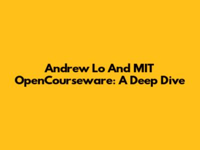 Andrew Lo And MIT OpenCourseware: A Deep Dive