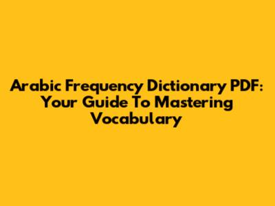 Arabic Frequency Dictionary PDF: Your Guide To Mastering Vocabulary
