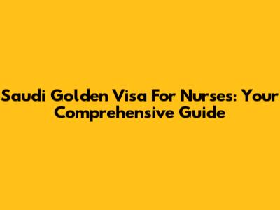 Saudi Golden Visa For Nurses: Your Comprehensive Guide
