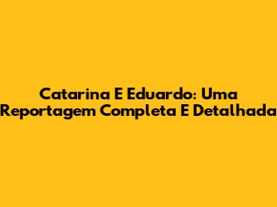 Catarina E Eduardo: Uma Reportagem Completa E Detalhada