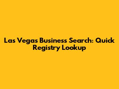 Las Vegas Business Search: Quick Registry Lookup