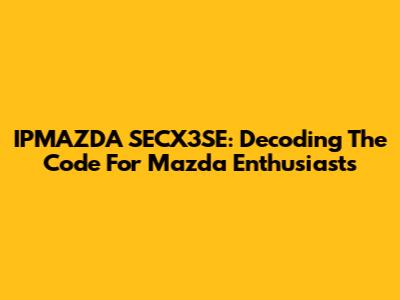 IPMAZDA SECX3SE: Decoding The Code For Mazda Enthusiasts