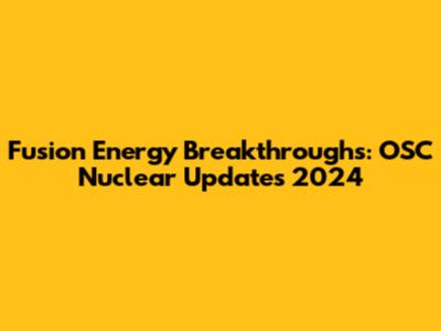 Fusion Energy Breakthroughs: OSC Nuclear Updates 2024