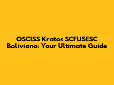 OSCISS Kratos SCFUSESC Boliviano: Your Ultimate Guide