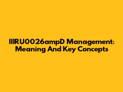 IIIRU0026ampD Management: Meaning And Key Concepts