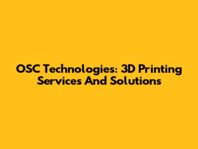 OSC Technologies: 3D Printing Services And Solutions