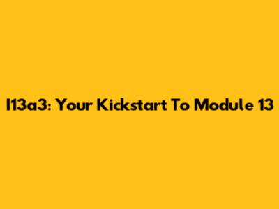 I13a3: Your Kickstart To Module 13