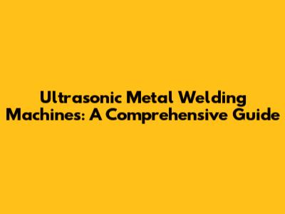 Ultrasonic Metal Welding Machines: A Comprehensive Guide