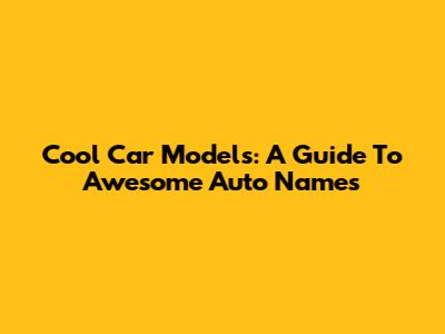 Cool Car Models: A Guide To Awesome Auto Names