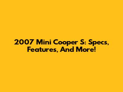 2007 Mini Cooper S: Specs, Features, And More!