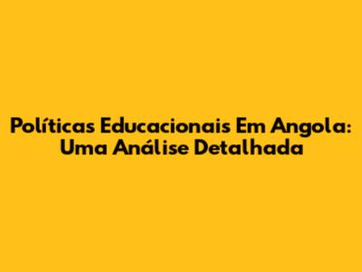 Políticas Educacionais Em Angola: Uma Análise Detalhada