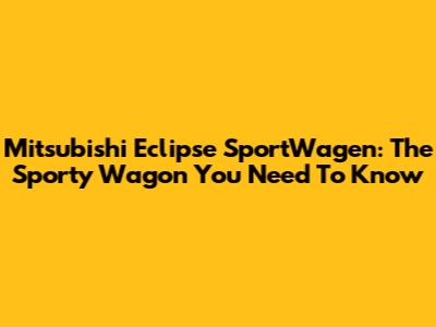 Mitsubishi Eclipse SportWagen: The Sporty Wagon You Need To Know