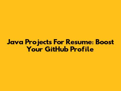 Java Projects For Resume: Boost Your GitHub Profile