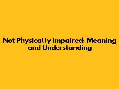 Hey guys! Ever wondered what it really means when someone says "not physically impaired"? It's a term you might hear in various contexts, from legal documents to everyday conversations, and understanding its nuances is super important. So, let's dive into the meaning of "not physically impaired," explore its implications, and break down the different aspects of this concept.