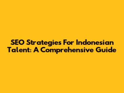SEO Strategies For Indonesian Talent: A Comprehensive Guide
