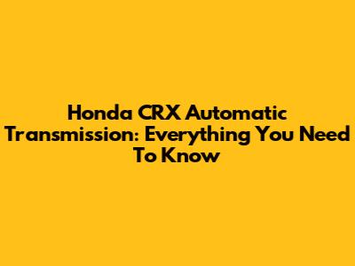 Honda CRX Automatic Transmission: Everything You Need To Know