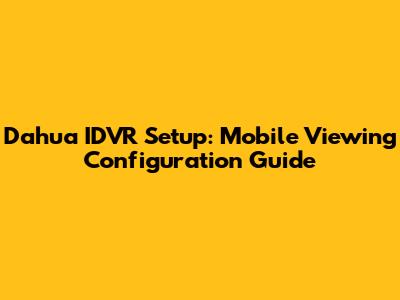 Dahua IDVR Setup: Mobile Viewing Configuration Guide