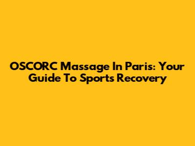 OSCORC Massage In Paris: Your Guide To Sports Recovery