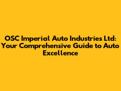 Hey guys, let's dive into OSC Imperial Auto Industries Ltd, a name that resonates with quality and reliability in the automotive world. This isn't just another repair shop; it's a hub for everything your vehicle needs to stay in tip-top shape. We're talking about a one-stop-shop where expertise meets passion, ensuring your car gets the best care possible. From routine maintenance to complex repairs, OSC Imperial Auto has got you covered. This guide will walk you through their services, what makes them stand out, and why they should be your go-to for all things automotive. So, buckle up, and let's explore what makes OSC Imperial Auto a leader in the industry!