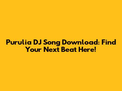 Purulia DJ Song Download: Find Your Next Beat Here!