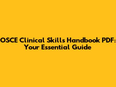 Hey guys! Preparing for your OSCEs (Objective Structured Clinical Examinations) can feel like climbing Mount Everest, right? You're juggling a million things – mastering clinical skills, understanding exam formats, and trying to keep your cool under pressure. That’s why having the right resources at your fingertips is super important. One resource that many students find incredibly helpful is the OSCE Clinical Skills Handbook PDF. Let's dive into why this handbook is a game-changer and how you can make the most of it.