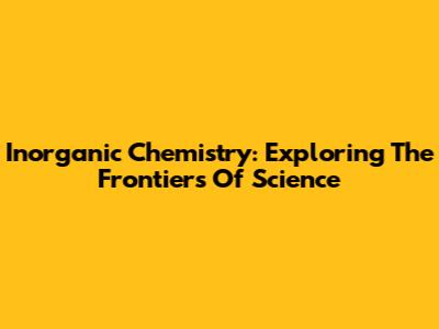 Inorganic Chemistry: Exploring The Frontiers Of Science