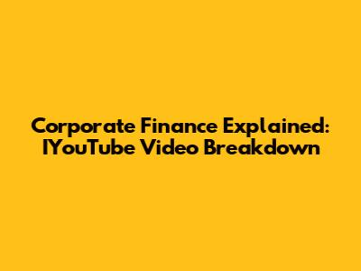 Corporate Finance Explained: IYouTube Video Breakdown