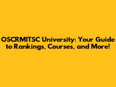 - What is the OSCRMITSC University's world ranking? OSCRMITSC's ranking varies depending on the ranking system. However, it is generally considered a competitive university. The actual ranking can be found on websites such as QS World University Rankings and Times Higher Education. These rankings are important as you explore universities.
