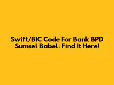 Swift/BIC Code For Bank BPD Sumsel Babel: Find It Here!