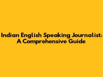 Indian English Speaking Journalist: A Comprehensive Guide